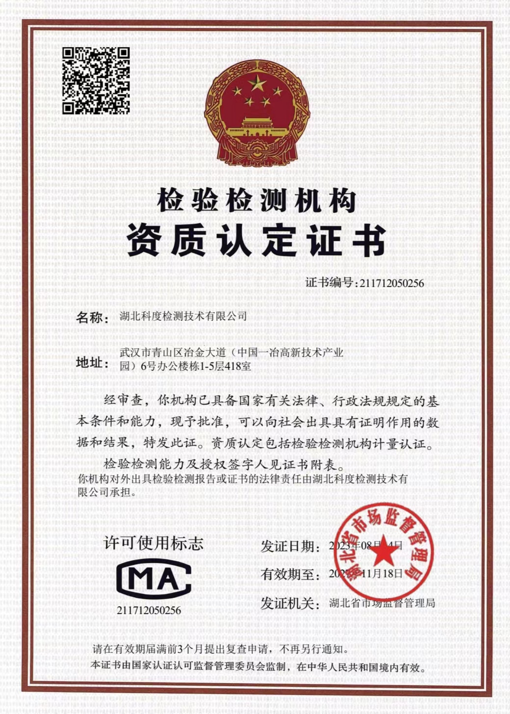 湖北科度檢測技術(shù)有限公司是一家專業(yè)從事環(huán)境類及相關(guān)領域檢測的第三方檢測機構(gòu),公司已通過湖北省市場監(jiān)督管理局CMA計量認證,可以面向社會出具權(quán)威CMA檢測報告。 我公司實驗室嚴格按照國家標準建設,擁有一大批國內(nèi)外先進儀器設備及現(xiàn)代化配套設施,并有經(jīng)驗豐富的中高級專業(yè)技術(shù)人員和嚴格的實驗室質(zhì)量保證體系為項目運作提供強力支撐。 作為第三方檢測機構(gòu),公司始終以高度的社會責任感經(jīng)營企業(yè),以“公正、嚴謹、高效”為宗旨,依托專業(yè)的技術(shù)實力為客戶提供專業(yè)優(yōu)質(zhì)檢測服務,受到政府、企業(yè)和社會各界的廣泛關(guān)注和認可。